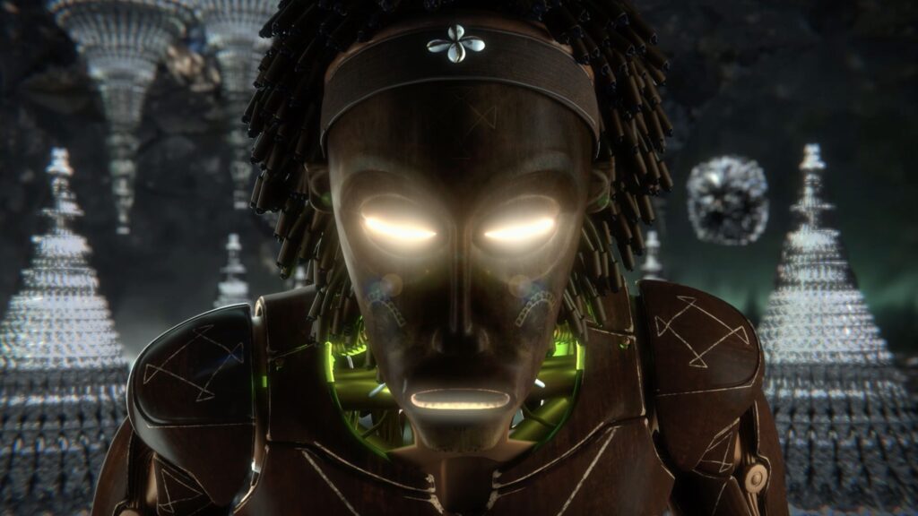 In this new animation, chrome waves crash against jeweled cliffs as Being, the Digital Griot—a nonbinary cyborg shaped by the words of Black queer poets—rises from the ocean to perform an original poem on care, humanity, and interconnectedness. Told entirely through dance and ASL, the piece centers deaf and hard-of-hearing audiences and challenges what storytelling can look like beyond sound.