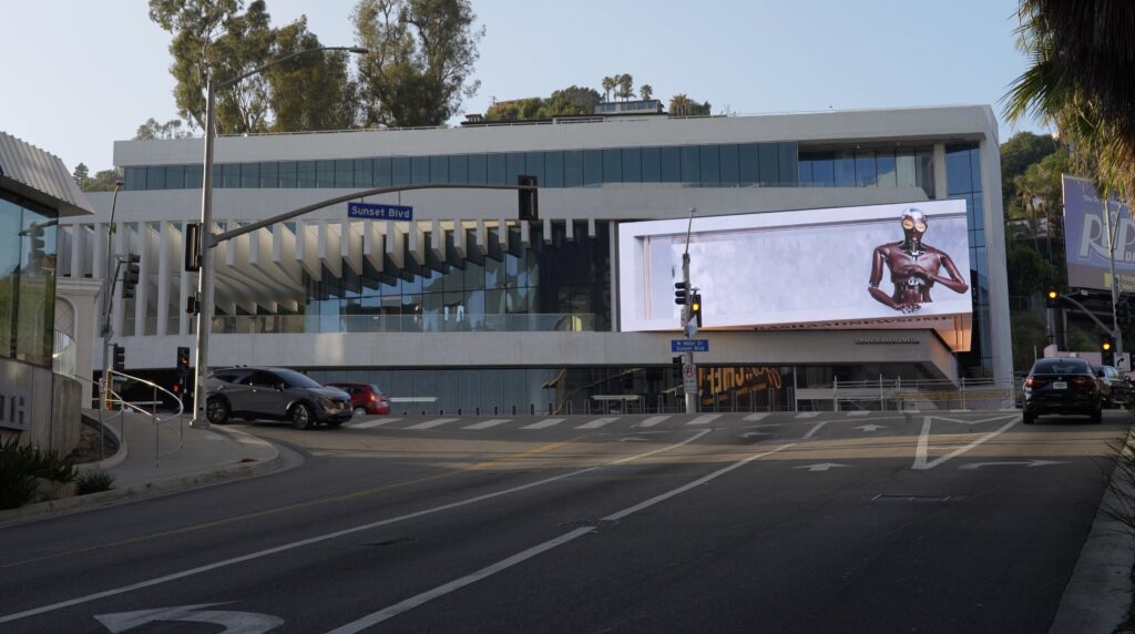 Small “Streams of Care Become a Pool of Love” is now live on the forced perspective billboard at the NOW building — 8497 W Sunset Boulevard, where Sunset meets La Cienega.
