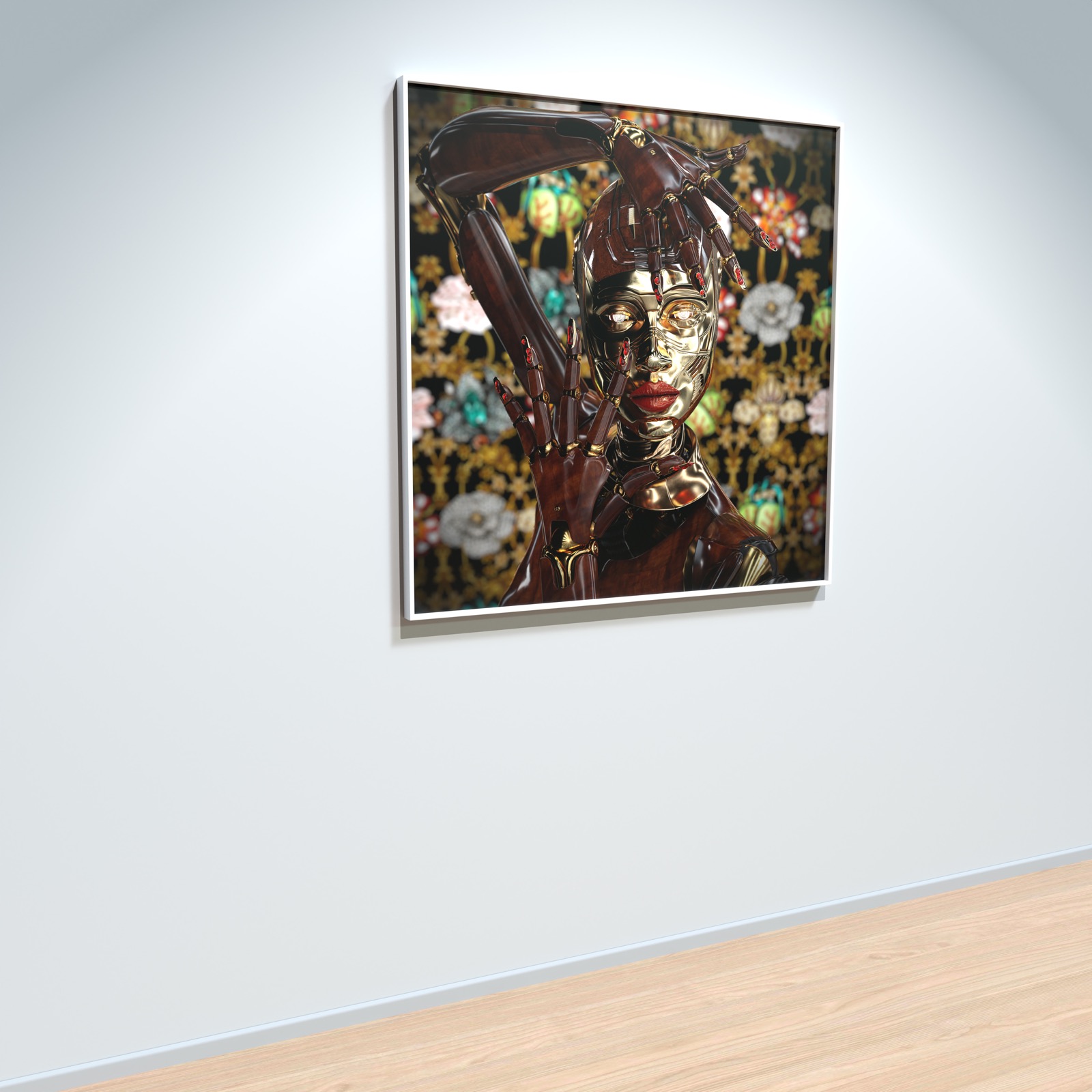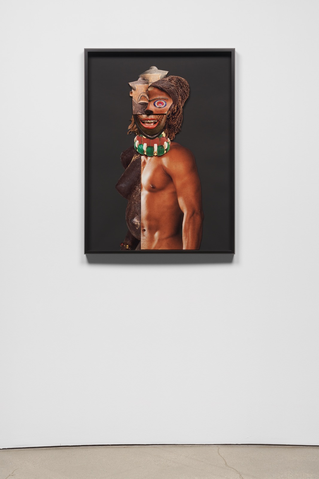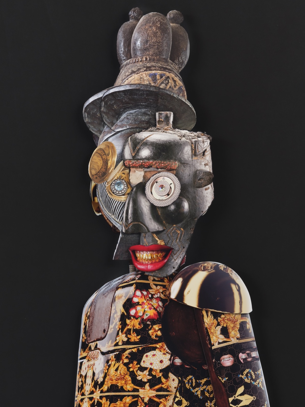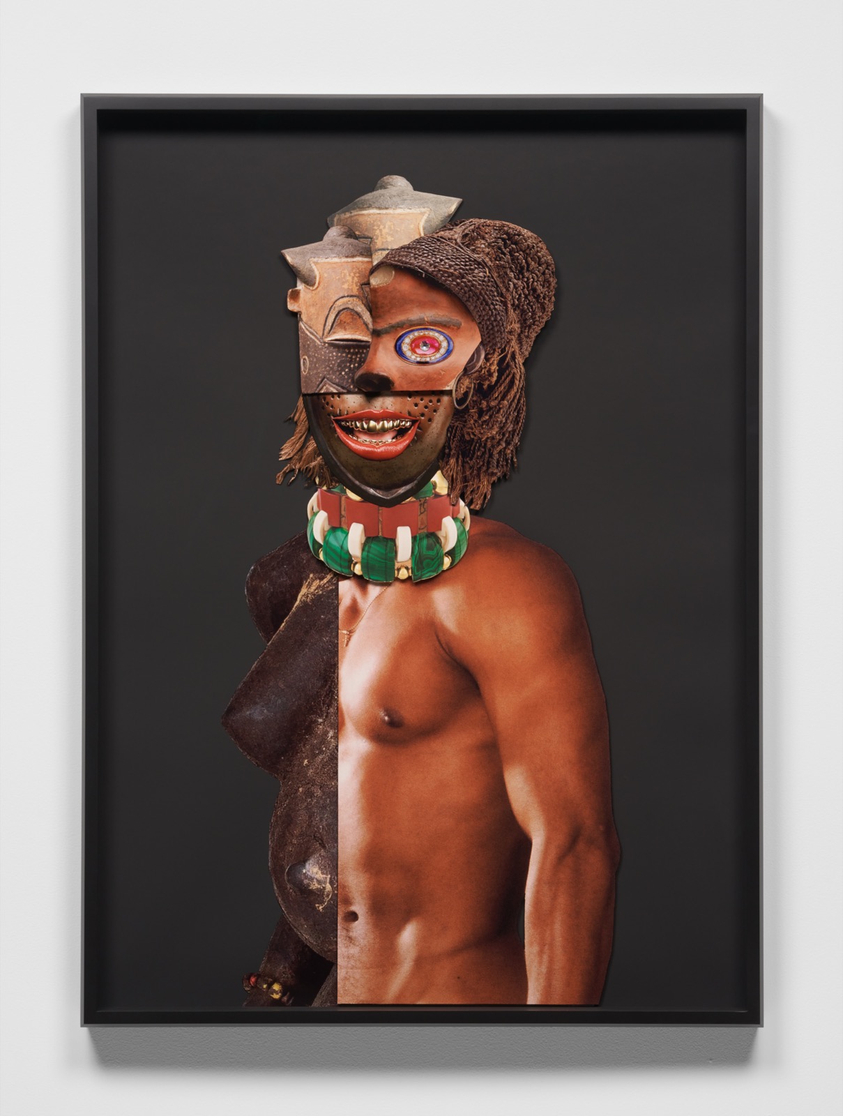 Afro-Fabulations I, 2023, Fujicolor Crystal Archive Matte photo collage with Swarovski crystals on paper in a black frame with a beveled edge and anti-UV/anti-reflective Optium Museum acrylic, 29.5 x 41 x 2.5 in.